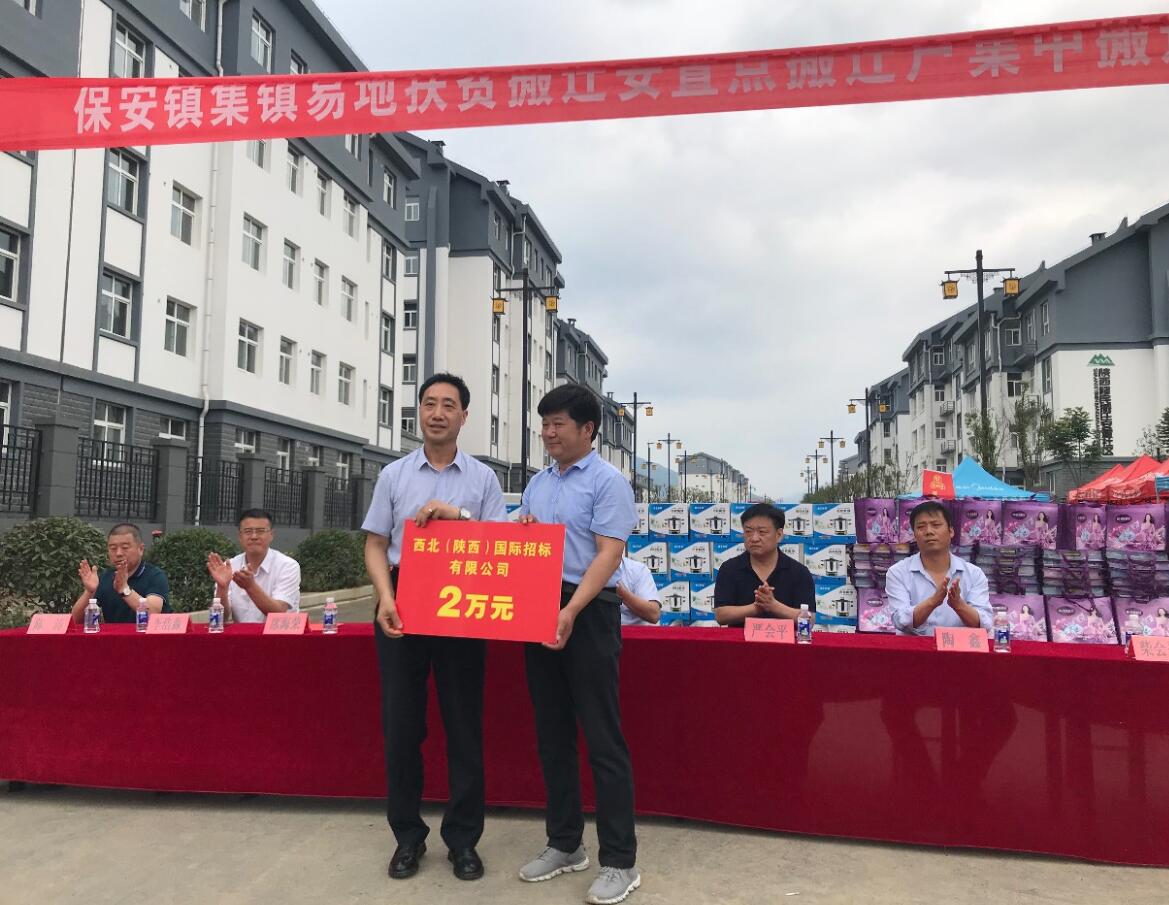 2019年6月26日(ri),洛南縣保(bao)安(an)鎮(zhen)人民政府(fu)組織(zhi)舉辦了保(bao)安(an)鎮(zhen)易地扶(fu)貧移(yi)民搬遷戶集中入住捐贈儀式(shi),縣委(wei)常委(wei)、常務(wu)副縣長李凌云同志,以及(ji)西北(陜西)國際(ji)招標(biao)有限公(gong)司、中建一局(ju)西北公(gong)司等相關(guan)單位參加。捐贈儀式(shi)上,我公(gong)司胡亞夫主任代表公(gong)司扶(fu)貧獻愛(ai)心向洛南縣保(bao)安(an)鎮(zhen)人民政府(fu)捐款2萬元整(zheng)。