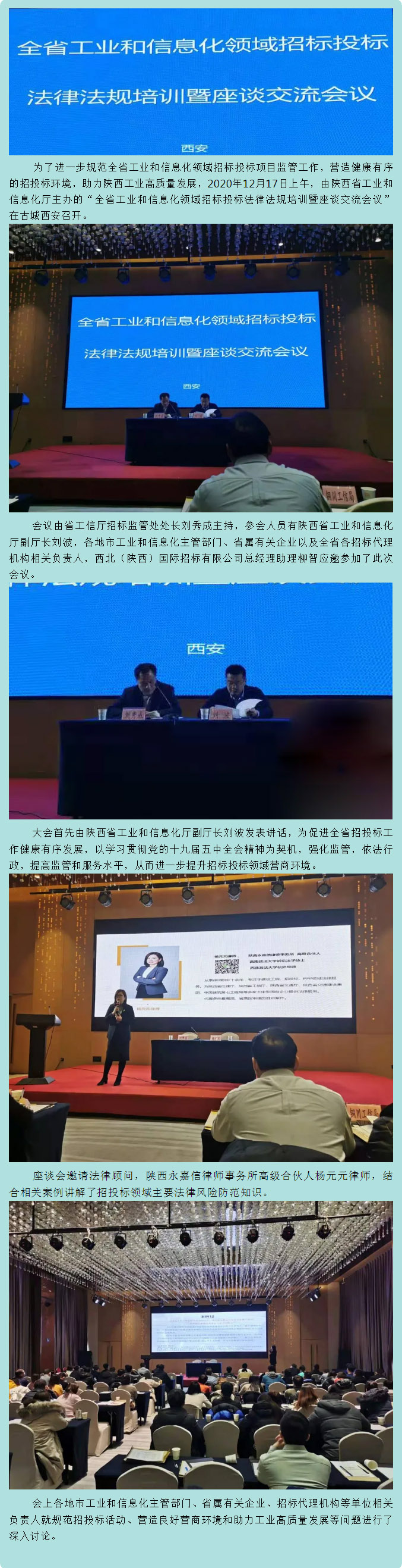 我公司總經理助理柳智受邀參加陜西省工業和信息化領域招標投標法律法規培訓暨座談交流會議