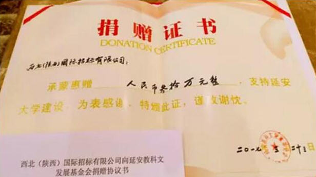 我公司向延安教科文發展基金會捐款