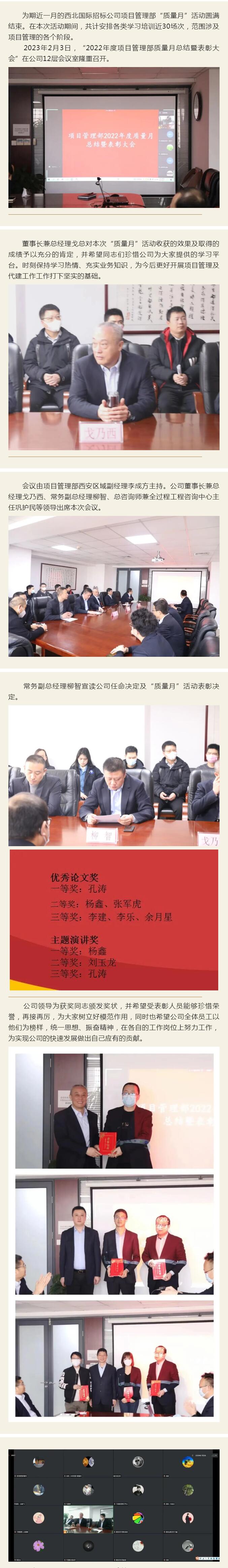 西北國際招標公司項目管理部召開“2022年度項目管理部質量月總結暨表彰大會”