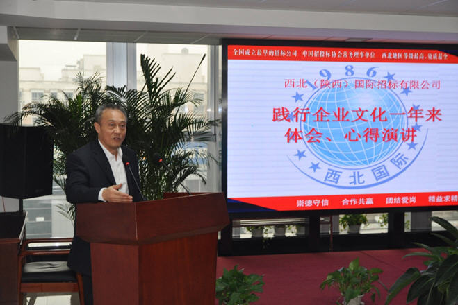 “崇德守信 合作共贏 團結(jie)愛(ai)崗 精(jing)益求精(jing)”十(shi)六個大字,凝聚了西北(bei)招(zhao)標三(san)十(shi)年求索的腳步(bu),高度濃縮了公(gong)司所倡(chang)導的核心價值(zhi)觀。為使全(quan)體(ti)員工不斷深刻理解,自覺(jue)踐行這一價值(zhi)體(ti)系,3月28日在(zai)公司十層(ceng)會議室開展了質(zhi)量月活動----“踐行(xing)公(gong)司企業文化(hua)一年來體(ti)會心得”演講(jiang)活動。二十名演講(jiang)選手、公(gong)司領導及全體(ti)員(yuan)工共同(tong)參加了此次活動。