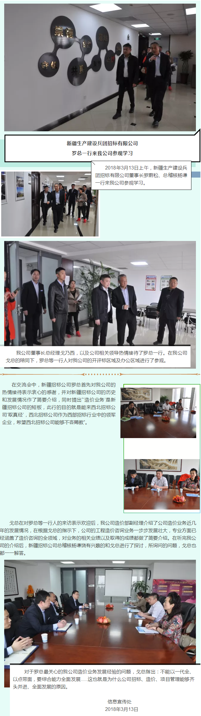 新疆生產建設兵團招標有限公司羅總一行來我公司參觀學習