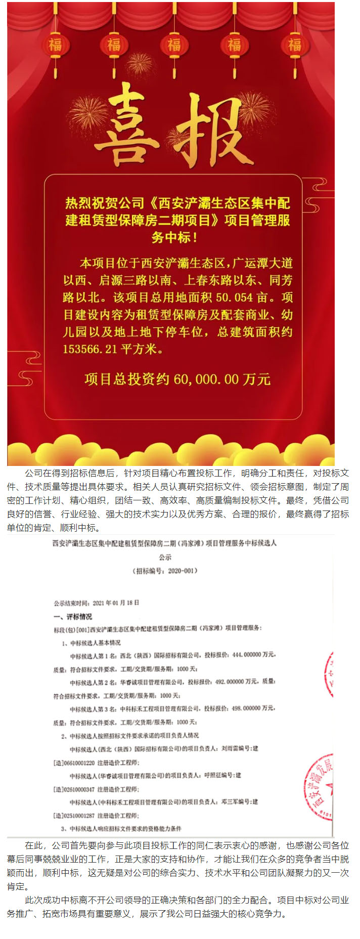 喜報!我公司中標西安浐灞生態區集中配建租賃保障房二期項目管理服務