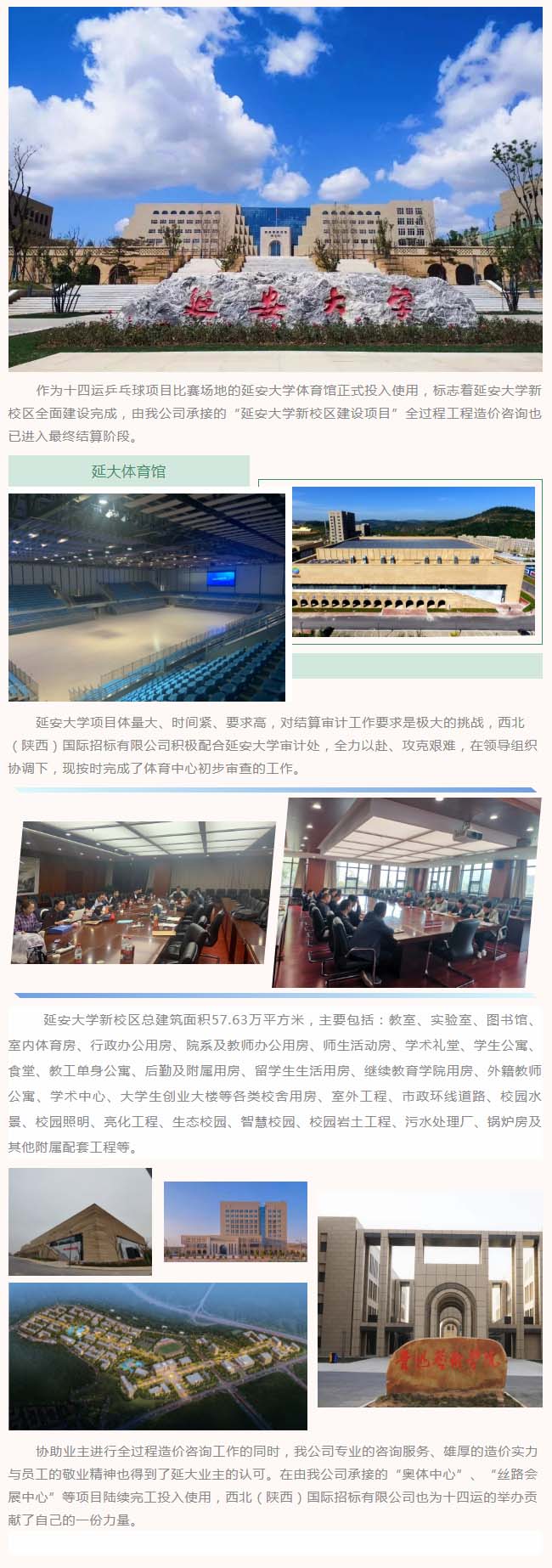 我公司全過程造價咨詢項目“延安大學體育館”投入使用,為十四運添磚加瓦