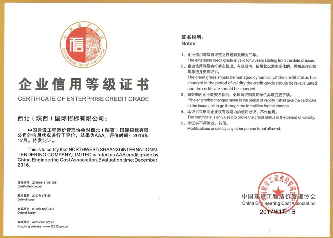 為了貫徹落實國務院(yuan)、住房和城(cheng)鄉(xiang)建(jian)(jian)設部關于(yu)社會信用體系建(jian)(jian)設,推進工程造價(jia)咨詢行業信用體系建(jian)(jian)設,由中國建(jian)(jian)設工程造價(jia)管理(li)協會組織,全面開展2016年度信(xin)用(yong)評(ping)(ping)價(jia)(jia)工作。經企(qi)業(ye)申報、省級(ji)工程造價(jia)(jia)管理機構(gou)初評(ping)(ping),中價(jia)(jia)協信(xin)用(yong)評(ping)(ping)價(jia)(jia)委員會最終審核,我公司榮獲“工程造價(jia)(jia)咨詢企(qi)業(ye)信(xin)用(yong)等級(ji)3A”。