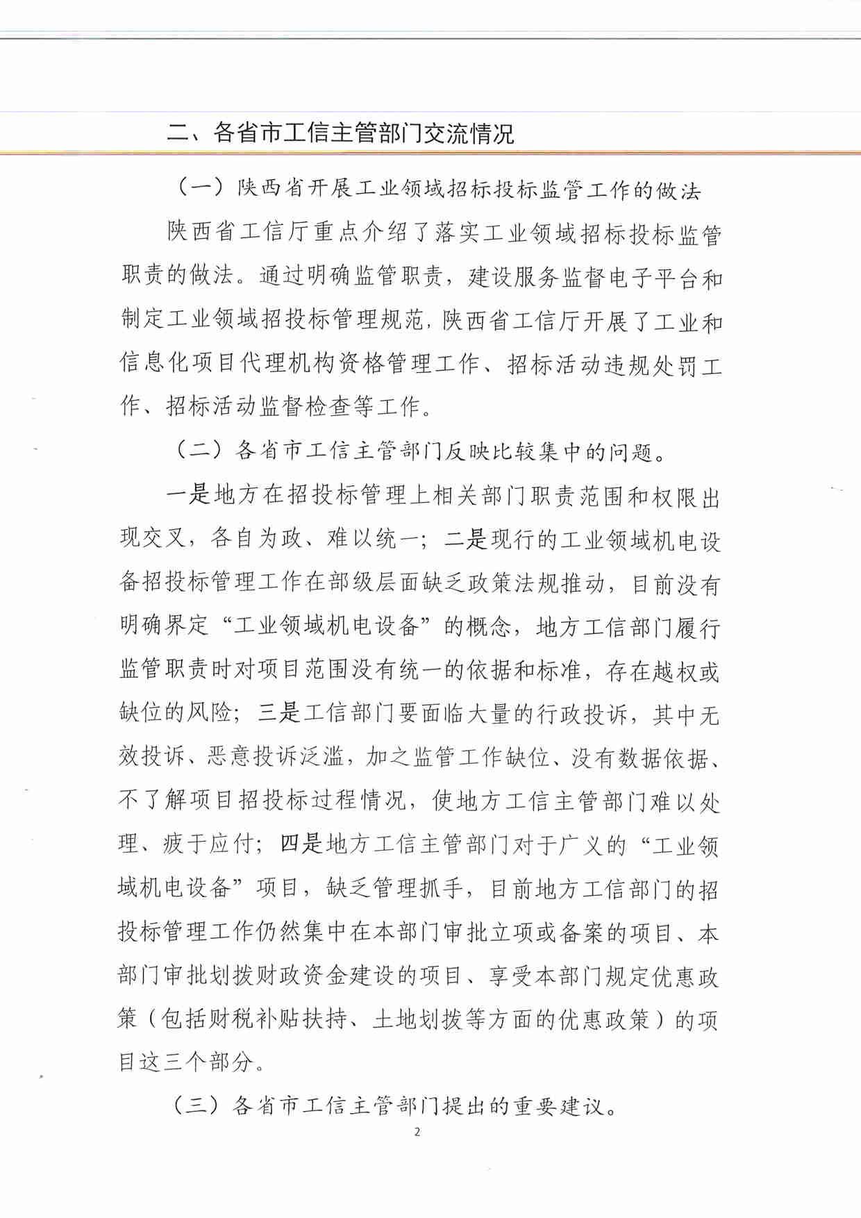 關于下發《工業領域機電設備招標投(tou)標工作座談會會議紀要(yao)》的(de)通知(zhi)