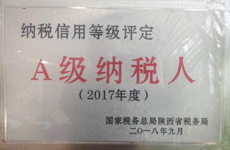 熱烈祝賀我(wo)公司榮獲國家稅務總(zong)局陜西省稅務局評定的“2017年度納稅(shui)信用(yong)等級評(ping)定A級(ji)(ji)納稅(shui)人”。“納稅(shui)信用(yong)等級(ji)(ji)A級(ji)納(na)稅(shui)(shui)人”是國家稅(shui)(shui)務(wu)總(zong)局(ju)陜西省稅(shui)(shui)務(wu)局(ju)授予信用良(liang)好企業(ye)的(de)最(zui)高級(ji)別(bie)榮譽稱(cheng)號(hao)。