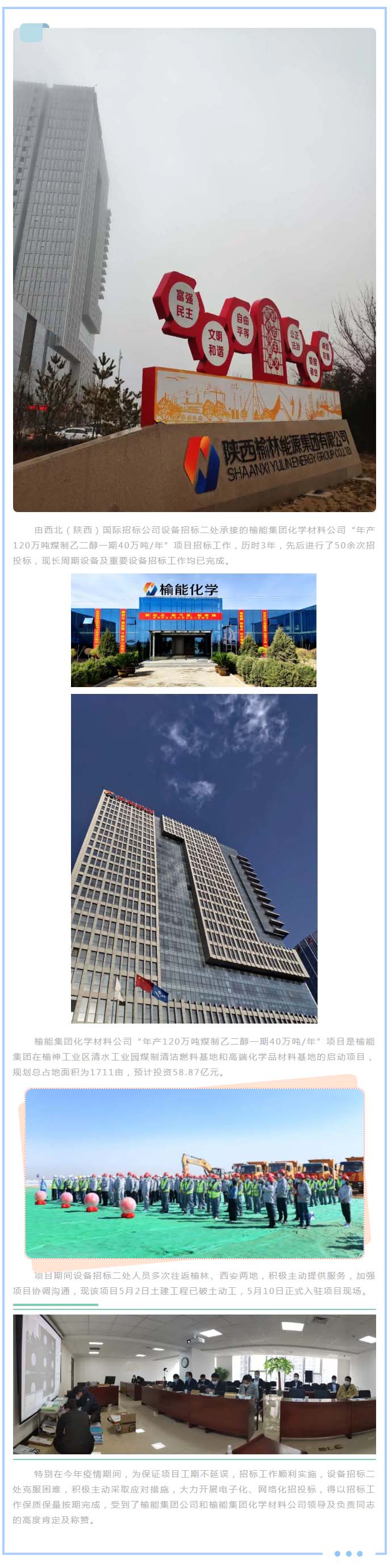 我公司承接榆能集團化學材料公司“年產120萬噸煤制乙二醇一期40萬噸/年”項目正式入駐項目現場