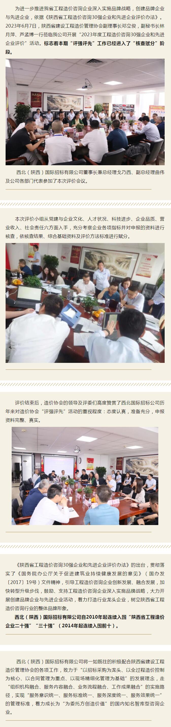 陜西省建設工程造價管理協會蒞臨我公司開展“2023年度工程造價咨詢30強企業和先進企業評價”活動