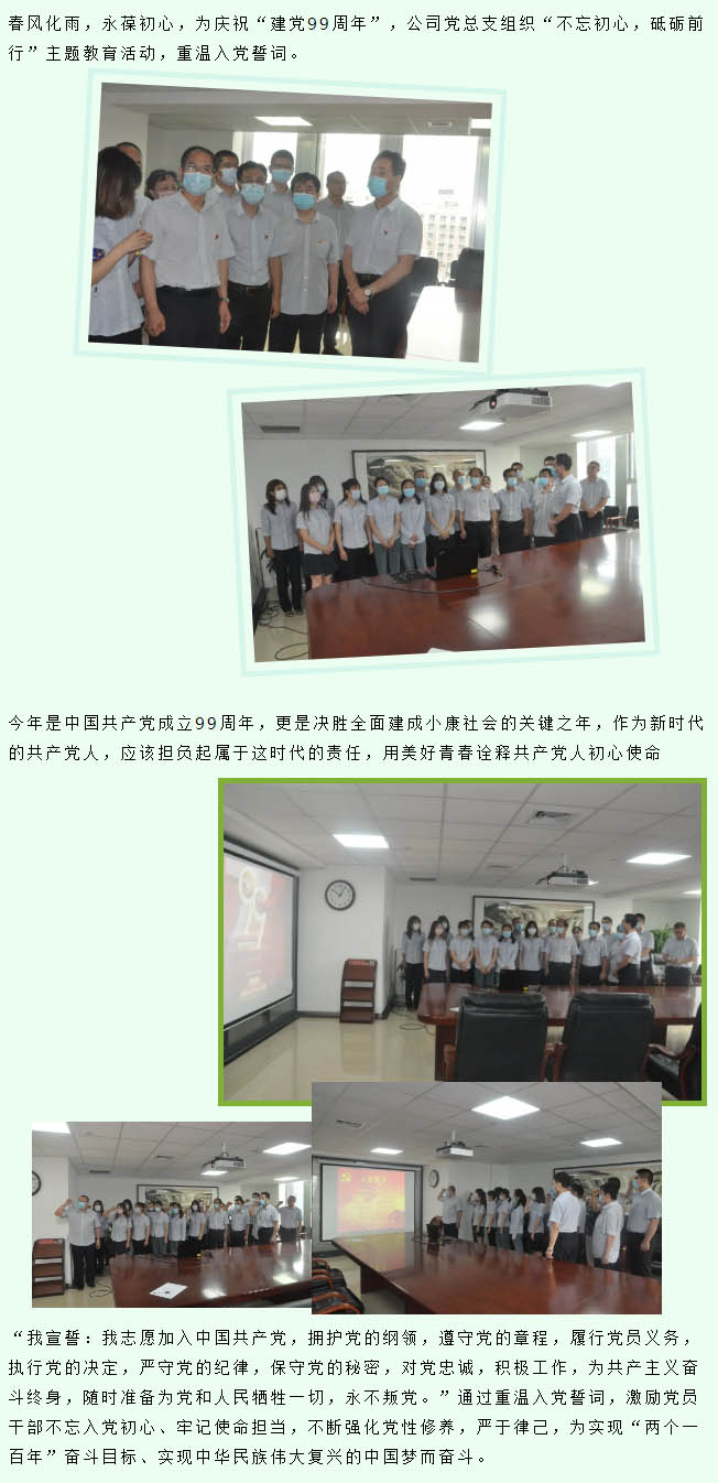 熱烈慶祝中國共產黨建黨99周年 不忘初心,砥礪前行——公司黨總支組織重溫入黨誓詞儀式