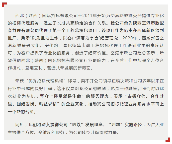 我公司榮獲“優秀招標代理機構”榮譽稱號