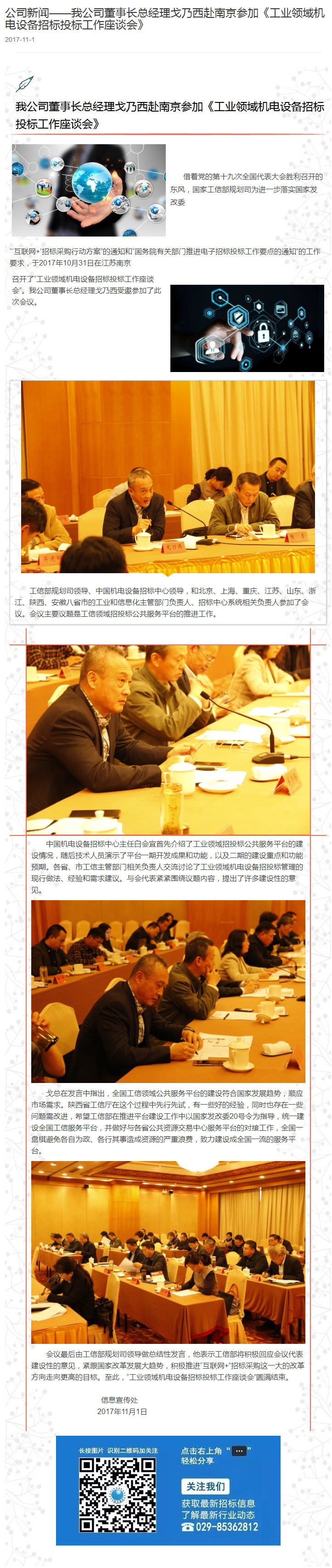 我公司董事長總經理戈乃西赴南京參加《工業領域機電設備招標投標工作座談會》