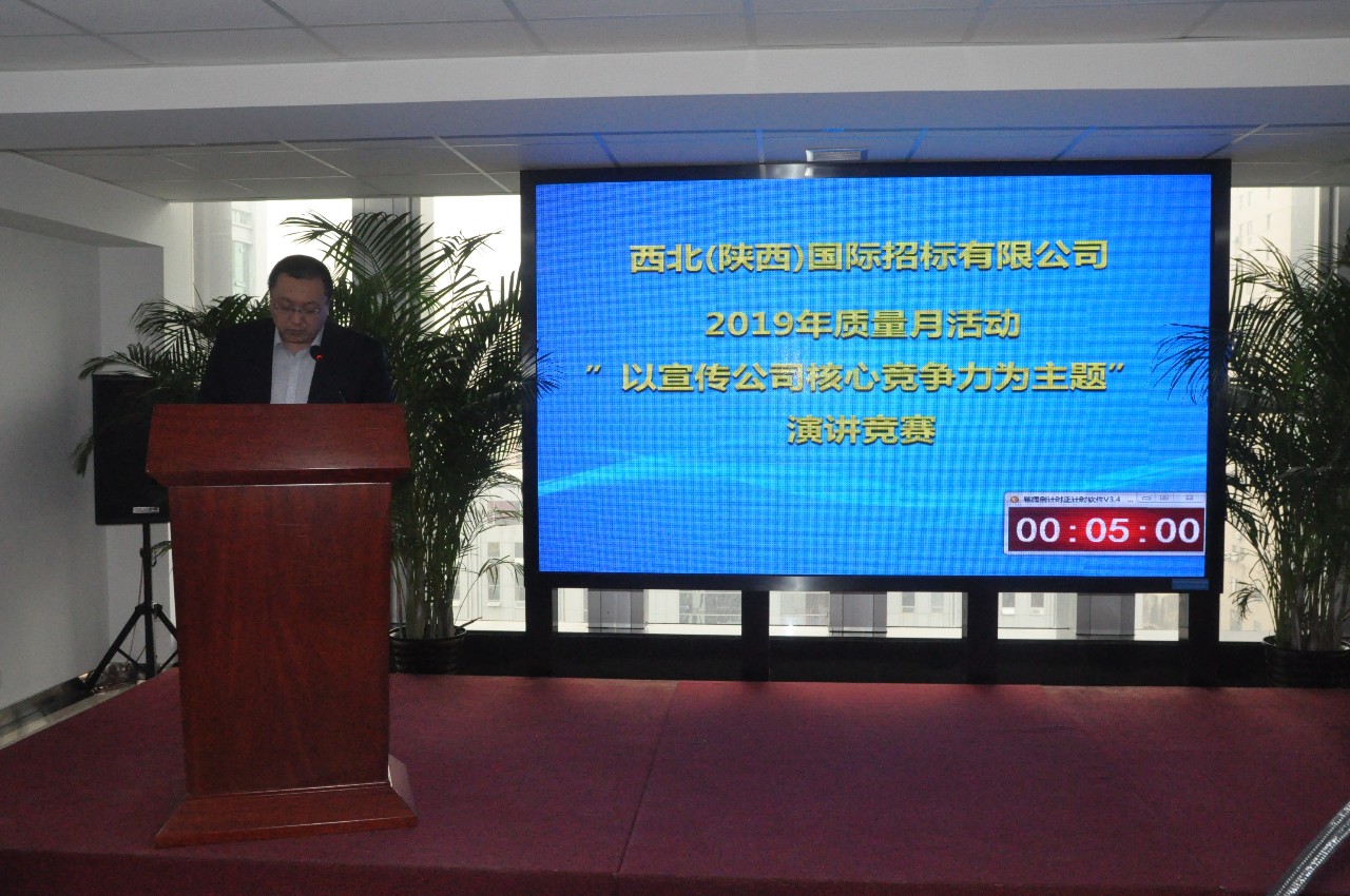 為進一步提升(sheng)“西北(陜西)國(guo)際招標有(you)限公司(si)”的(de)品牌價值,全面貫徹“以(yi)招標采(cai)購(gou)為龍頭,以(yi)全過(guo)程造價控制(zhi)為核心,以(yi)合同管理(li)為重(zhong)點,以(yi)現場精(jing)細(xi)化管理(li)為基礎”的(de)公司(si)發展戰略,2019年3月(yue)22日,公司質量月活動的(de)第四周(zhou),由綜合(he)監督管理處組織的(de)“以宣(xuan)傳(chuan)公司核心競爭力為主題(ti)”的(de)演講(jiang)競賽如期舉(ju)辦。