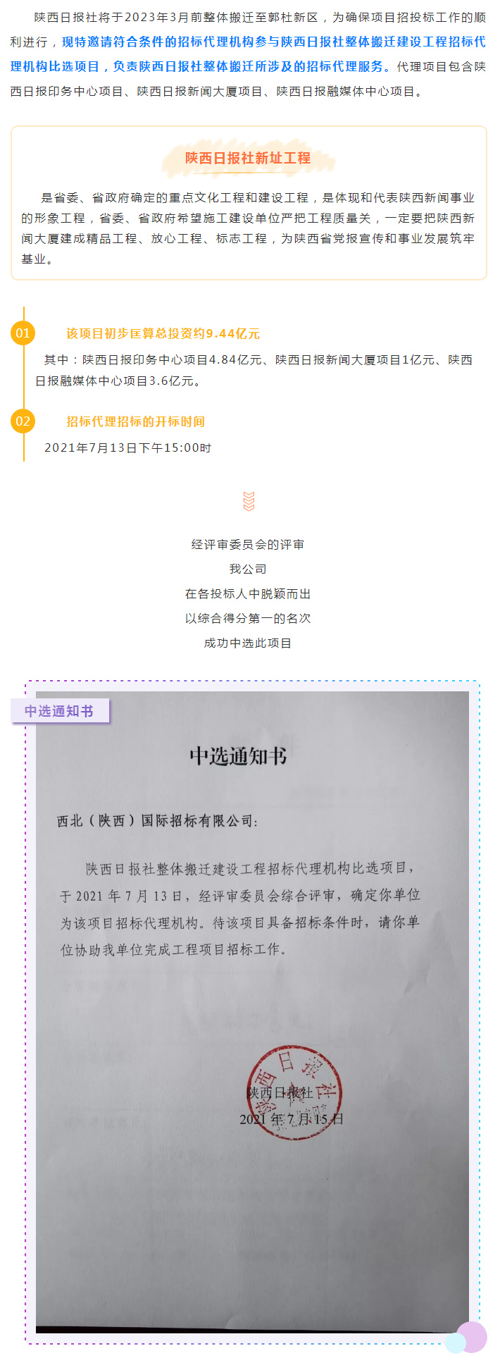 我公司成功中選陜西日報社整體搬遷建設工程項目