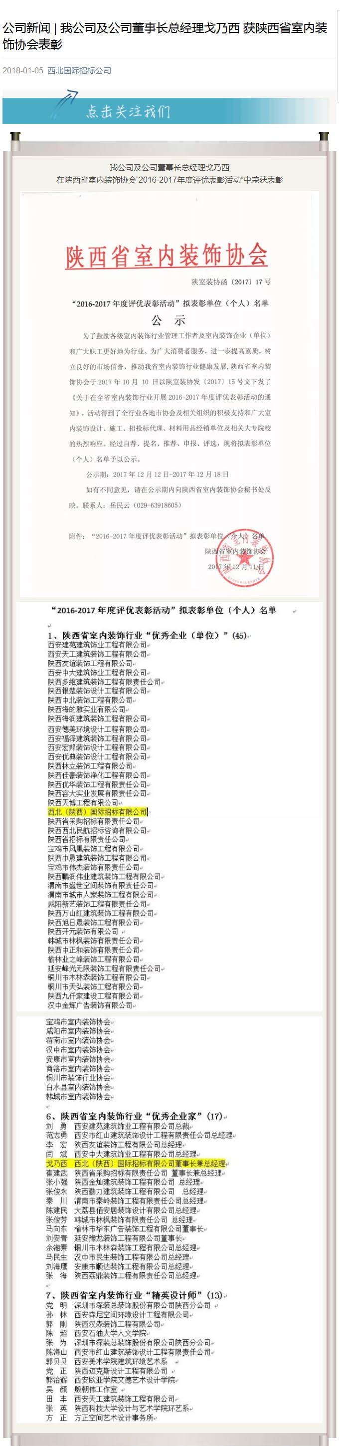 我公司及公司董事長總經理戈乃西 獲陜西省室內裝飾協會表彰