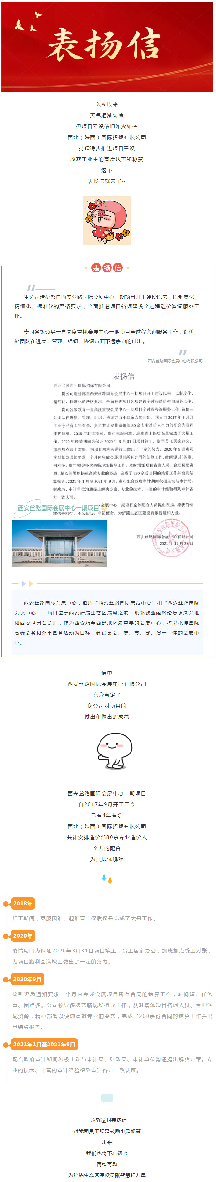 我司喜獲西安絲路國際會展中心有限公司表揚信
