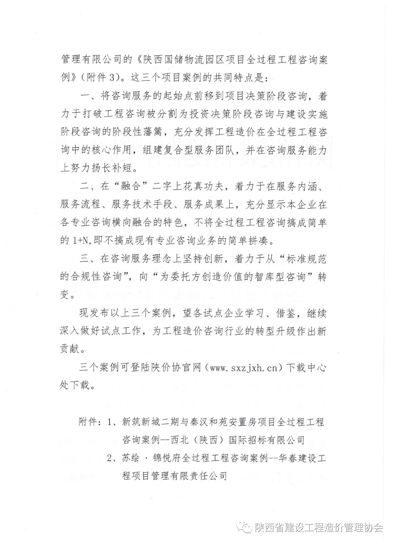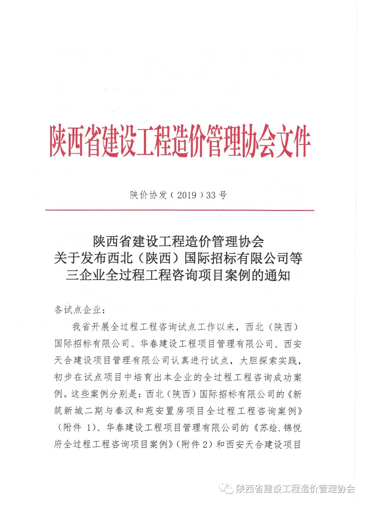陜價協關于發布西北(陜西)國際招標有限公司等三企業全過程工程咨詢項目案例的通知