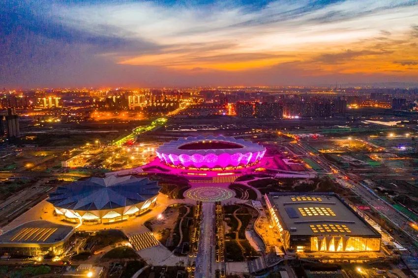 第十四屆全運會主場館西(xi)安(an)奧體(ti)(ti)中(zhong)心“一場兩館”呈“品(pin)”字形分布(bu)。從空中(zhong)俯瞰西(xi)安(an)奧體(ti)(ti)中(zhong)心體(ti)(ti)育場,就像(xiang)一朵巨大(da)的(de)“石(shi)榴花(hua)”,28個“花(hua)瓣”勾勒(le)出(chu)石(shi)榴花(hua)綻(zhan)放和絲綢舞動的(de)韻律。