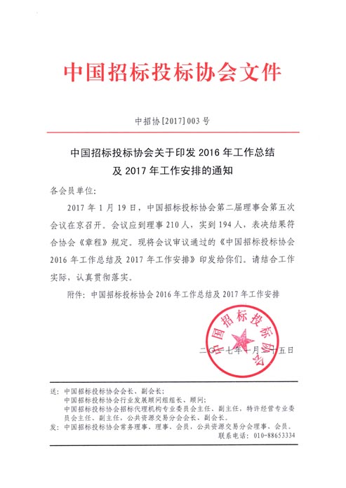 中國招標投標協會2016年工作總結及2017年工作安排