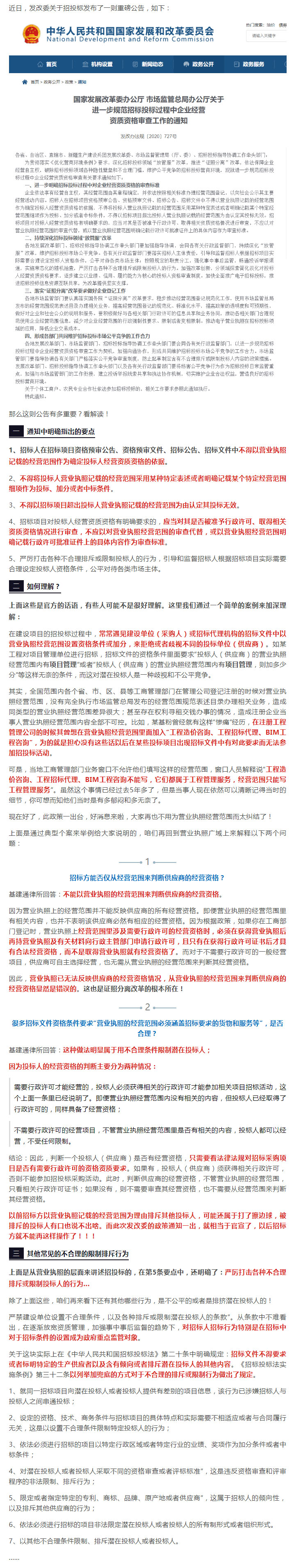 發改委發布關于進一步規范招標投標過程中企業經營資質資格審查工作的通知
